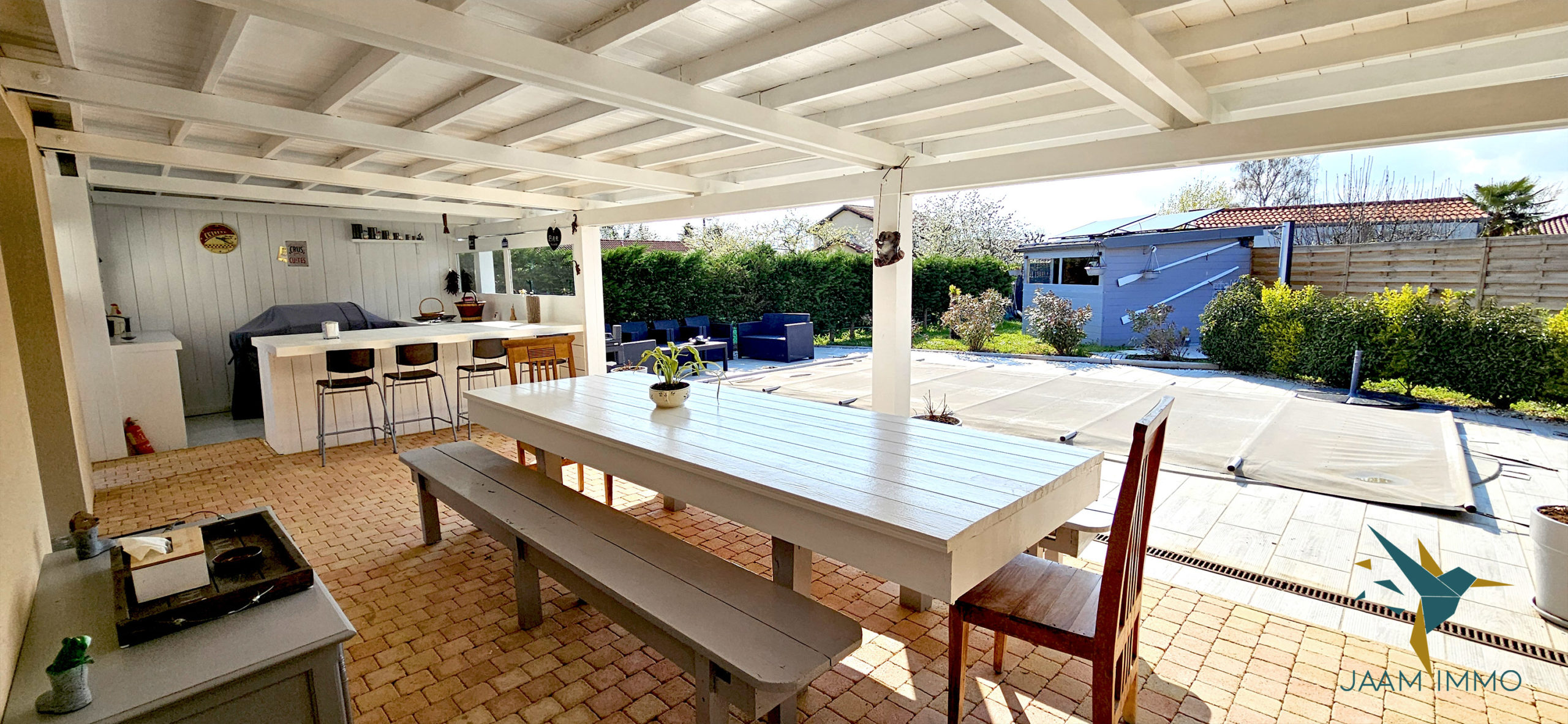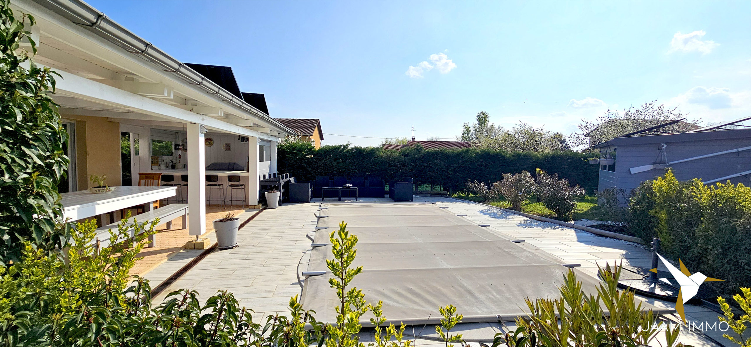 A l’extérieur vous serez tout autant séduit grâce à la belle piscine exposée ouest, une terrasse couverte avec cuisine d’été, et un espace jacuzzi. Le tout au calme !