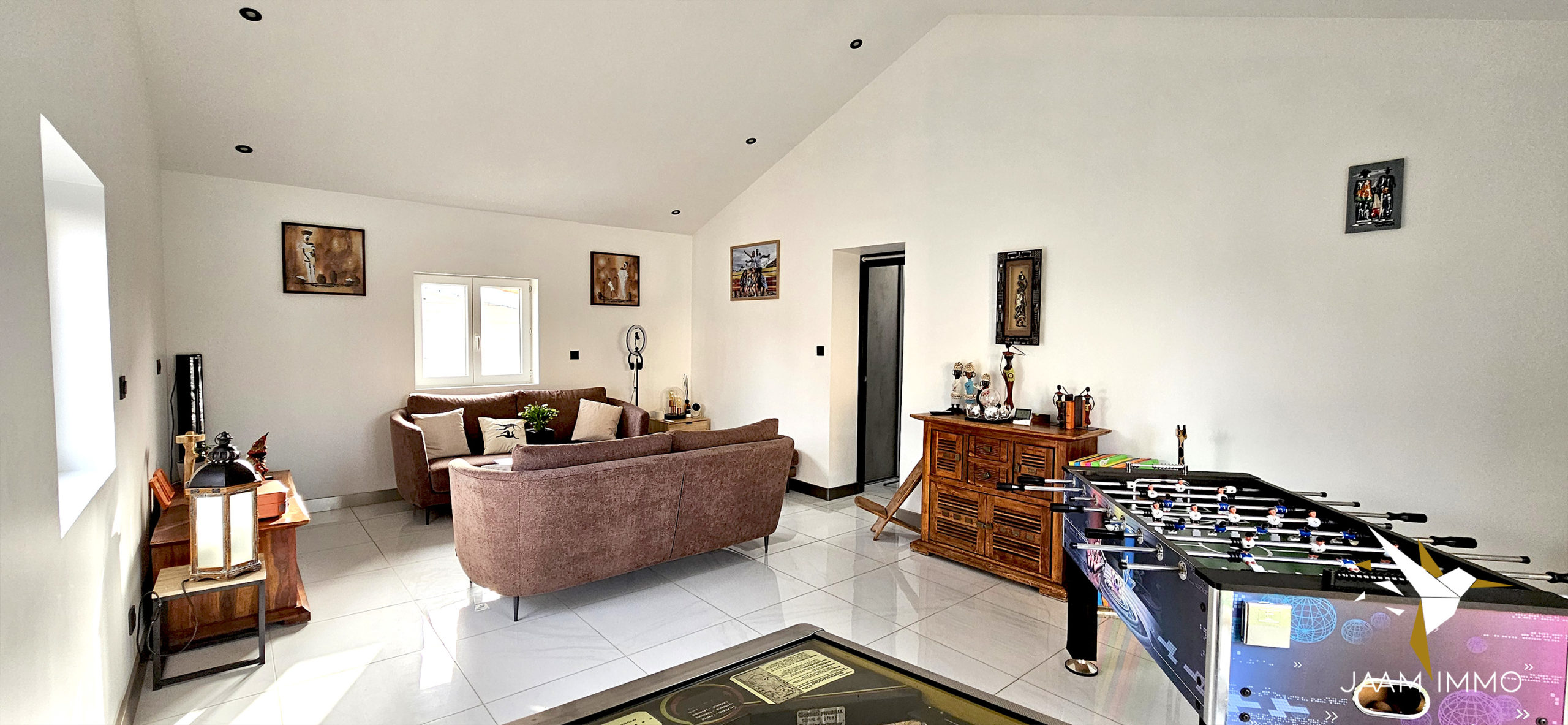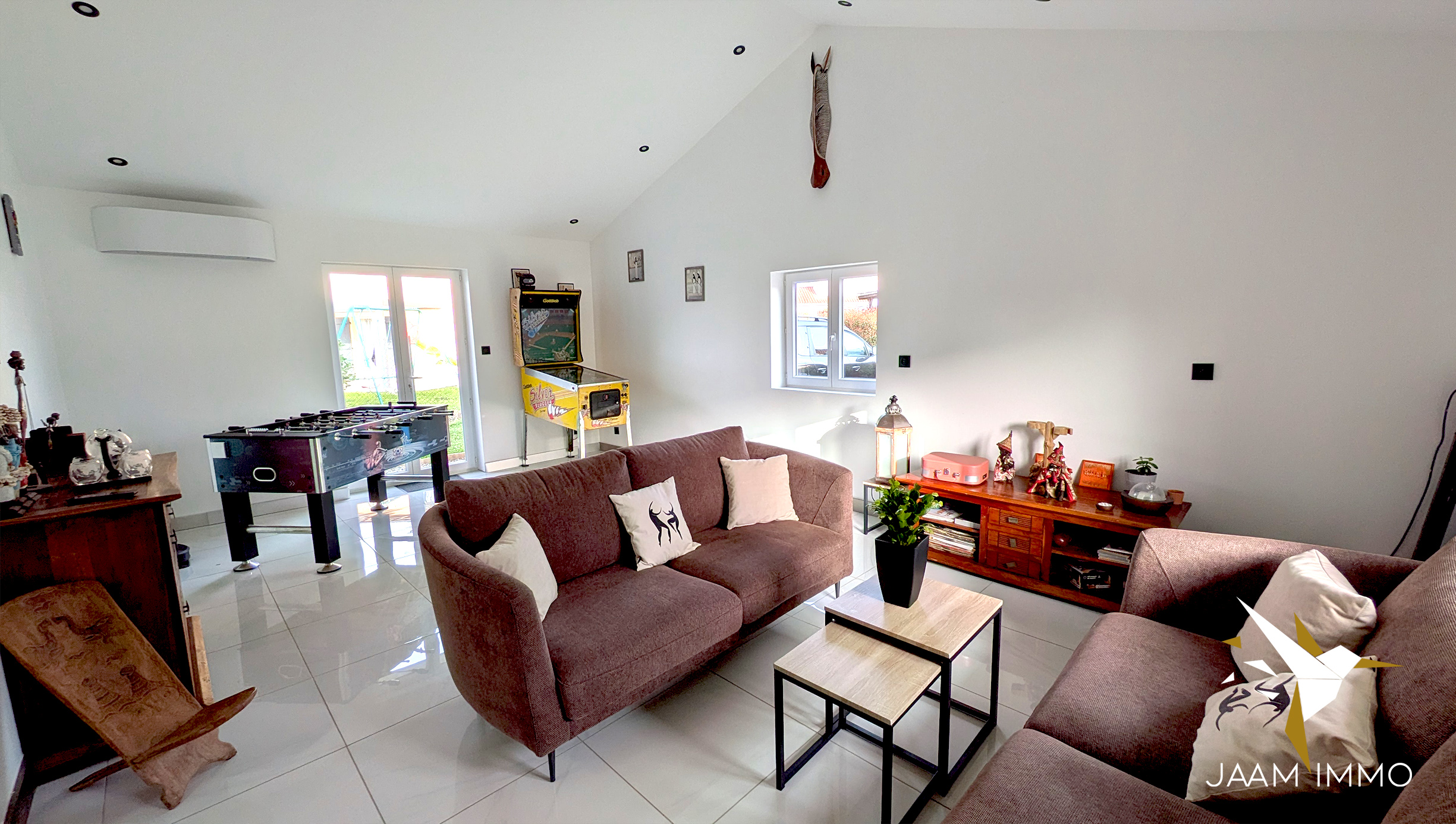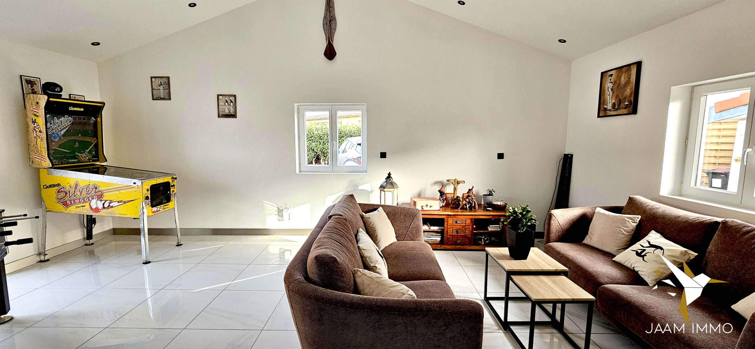 A l’intérieur vous serez immédiatement séduit par son aménagement et ses volumes : 164 m2 entièrement de plain-pied comprenant une grande pièce de vie avec cuisine ouverte, 3 chambres dont une suite parentale avec salle d’eau, un bureau, une salle de bains et une extension de 28 m2 pouvant faire office de 4ème chambre (voir 5ème), salle de jeux ou autre. La maison comprend également 2 WC et une buanderie.