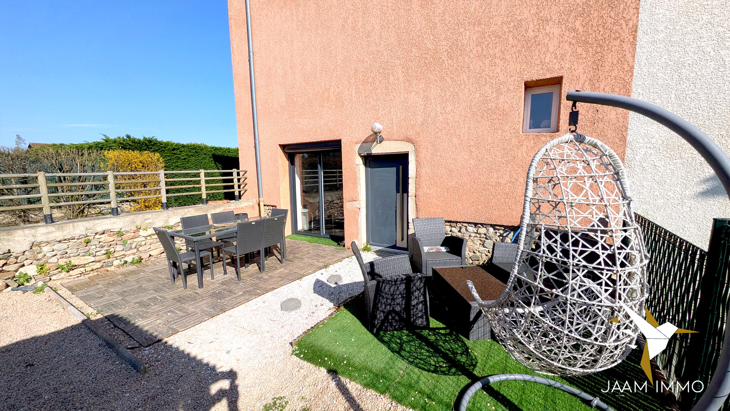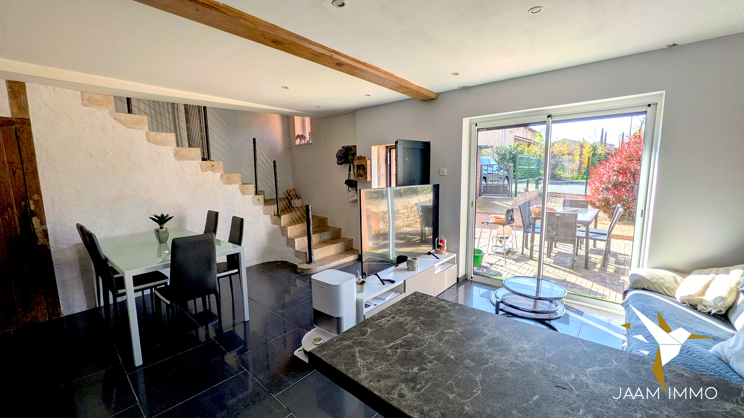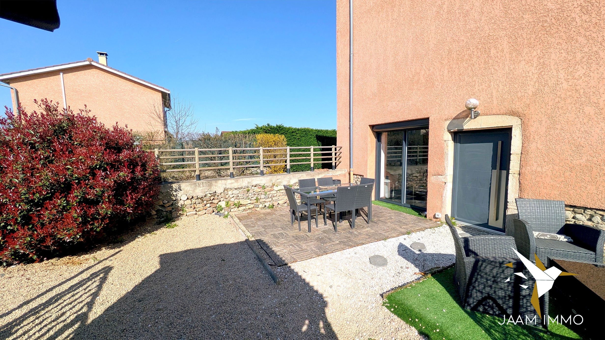 La maison comprend également une cour exposée Ouest pour profiter du soleil, et une place de parking. Cette ancienne grange a été entièrement rénovée en 2012 (isolation, menuiseries, toiture, électricité…) : aucuns travaux à prévoir.