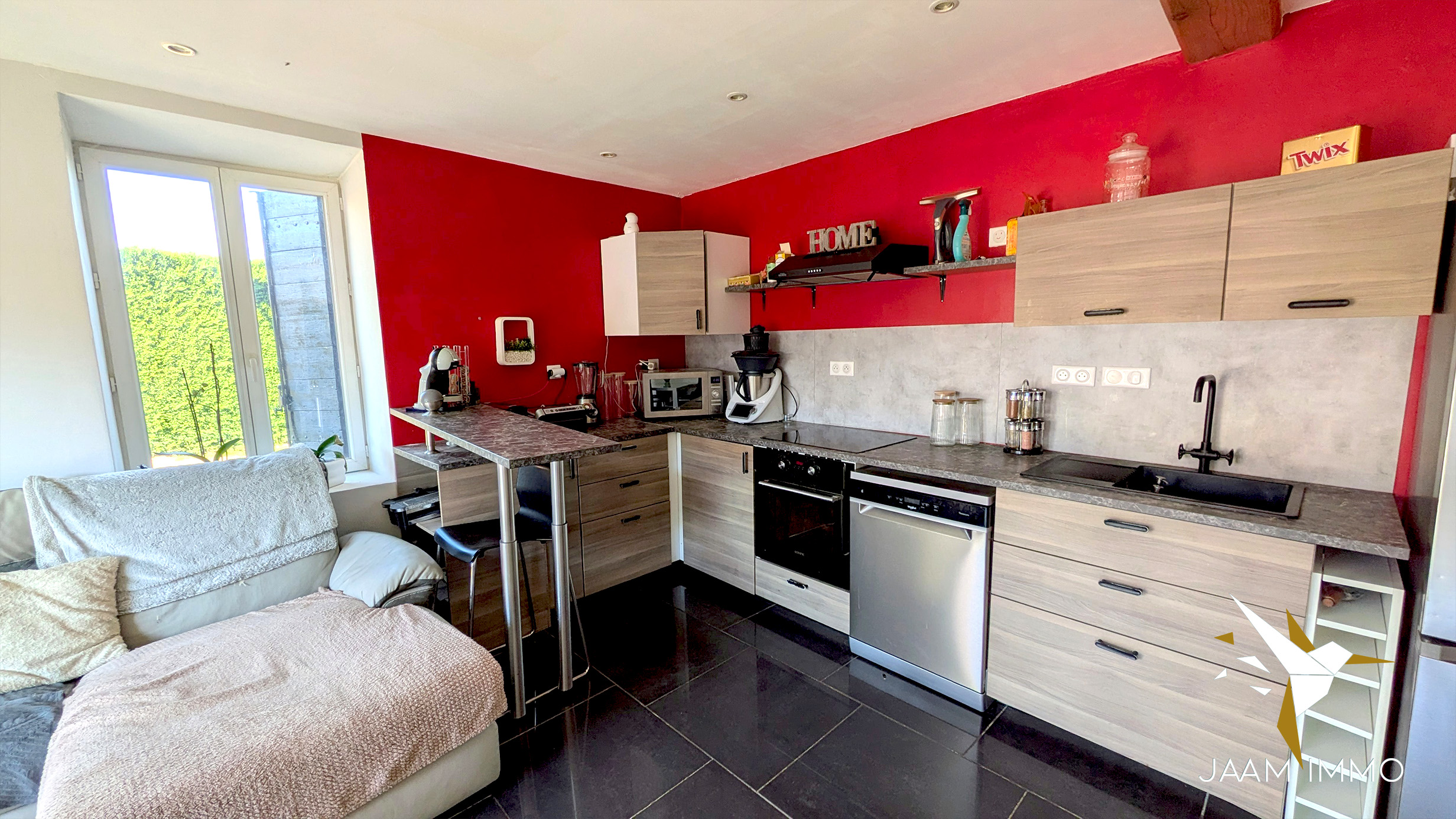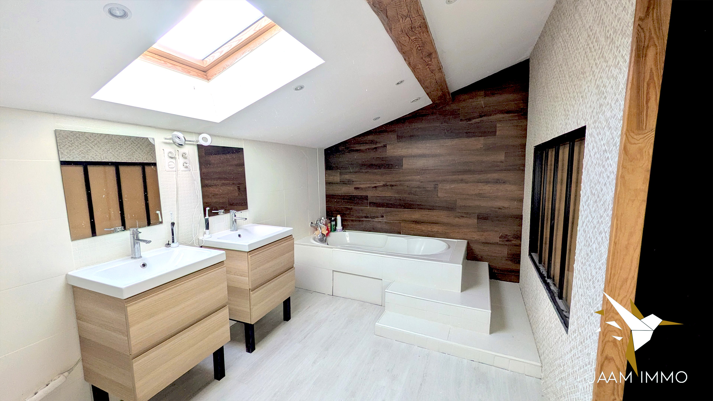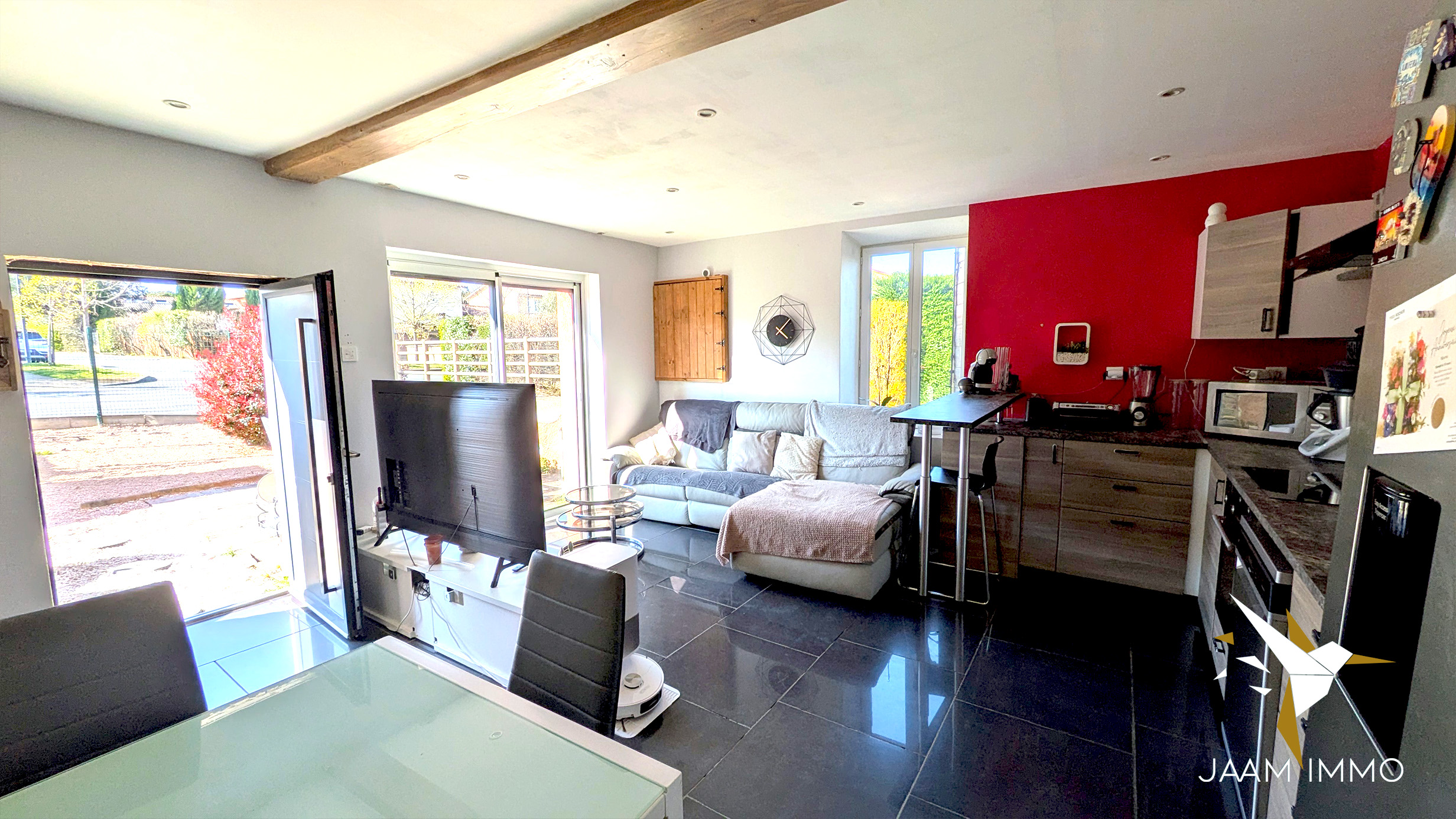La maison comprend également une cour exposée Ouest pour profiter du soleil, et une place de parking. Cette ancienne grange a été entièrement rénovée en 2012 (isolation, menuiseries, toiture, électricité…) : aucuns travaux à prévoir.