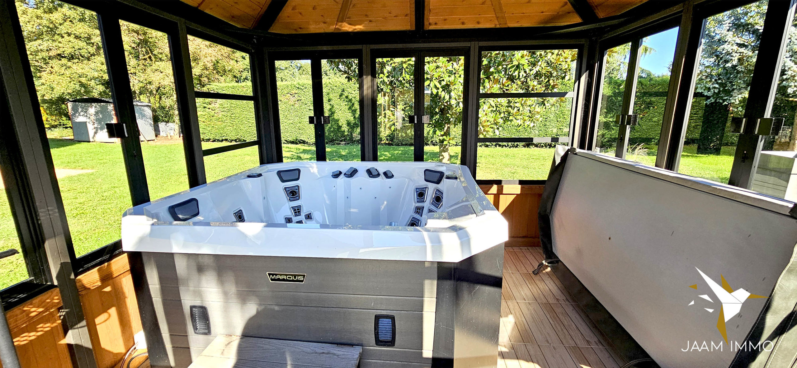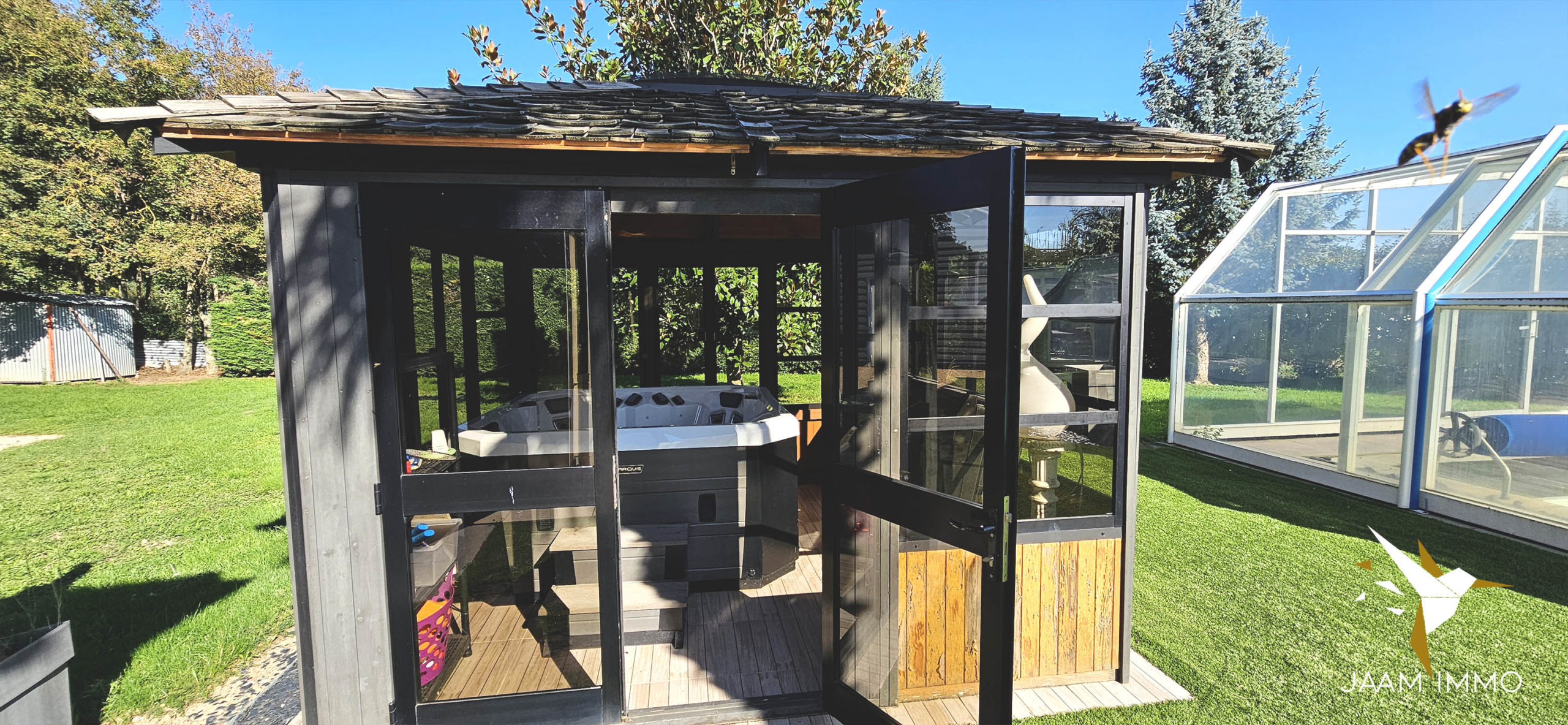 A l’extérieur vous serez immédiatement séduit par le grand terrain de 3 300 m2 sans aucun vis-à-vis avec vue sur le Mont Brouilly. Il possède une piscine de 10 x 5 mètres dotée d’un abri haut, vous permettant de vous baigner en toute saison, d’un poolhouse et d’un espace jacuzzi.